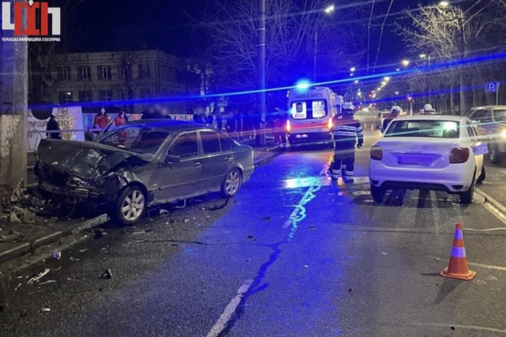 У Черкасах сталася дорожньо-транспортна пригода за участі двох легкових автомобілів. Аварія трапилася ввечері на одній із жвавих вулиць міста та призвела до пошкодження інфраструктури.