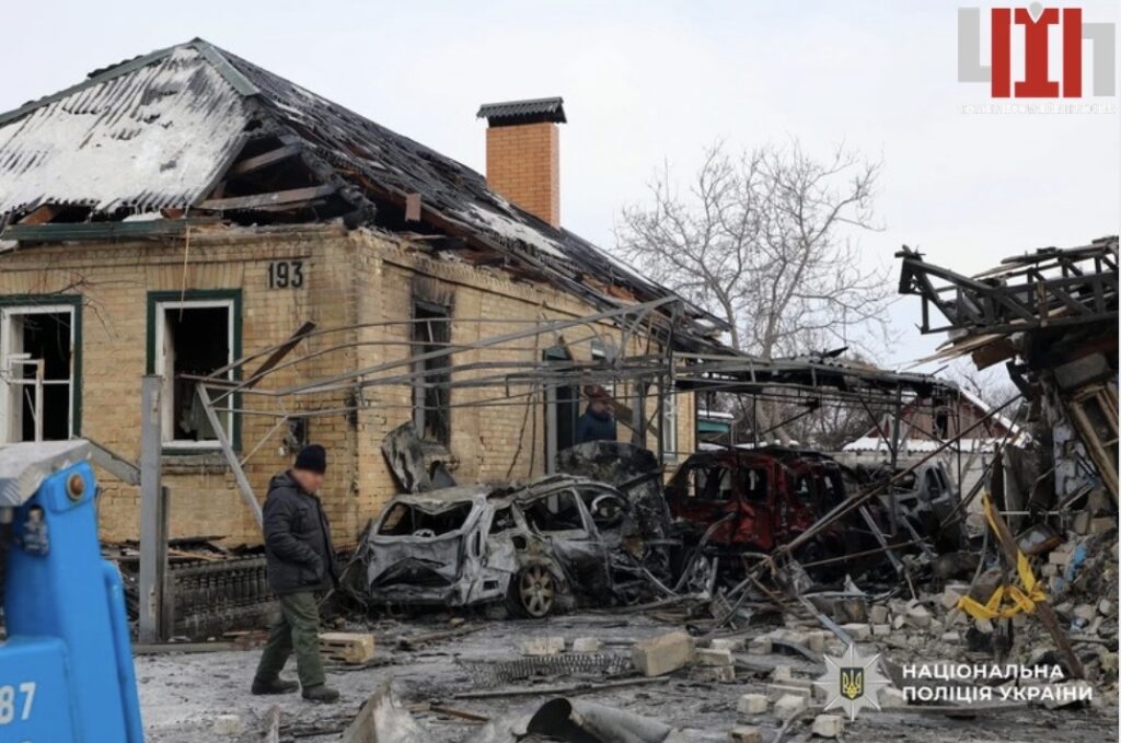 У Черкасах триває робота поліції на місцях дронової атаки російської федерації. Правоохоронці продовжують огляд пошкоджених осель, документують руйнування та збирають докази чергового воєнного злочину проти мирного населення.