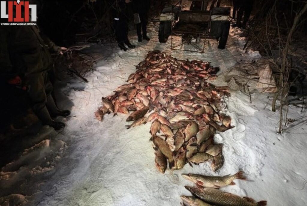 Під час перевірки транспортного засобу поліцейські виявили рибальський бур і п’ять мішків зі свіжовиловленою рибою: 155 лящів, 57 карасів, 14 коропів, 9 щук, 11 товстолобів, 2 плітки та 1 плоскирку. За підрахунками фахівців, сума завданих державі збитків перевищує 2 мільйони гривень.