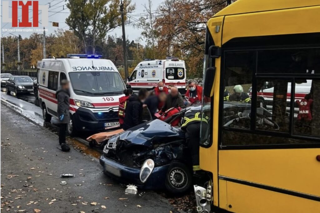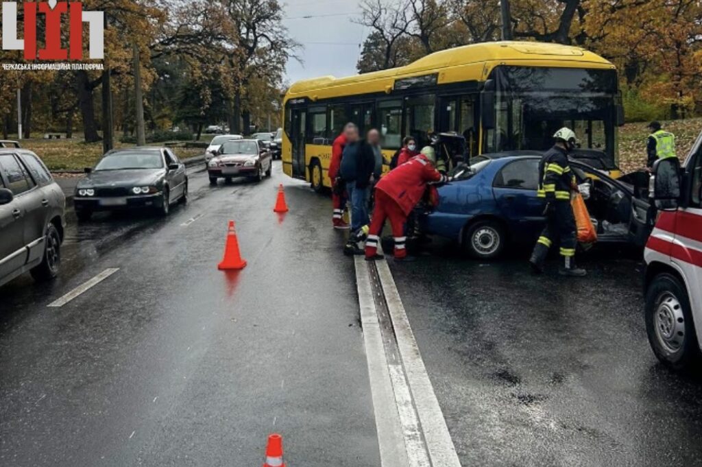У Черкасах на вулиці Дахнівській 28 жовтня сталася дорожньо-транспортна пригода за участю легкового автомобіля та маршрутного автобуса. Про це повідомили на офіційній сторінці Головного управління ДСНС України в Черкаській області у Facebook.