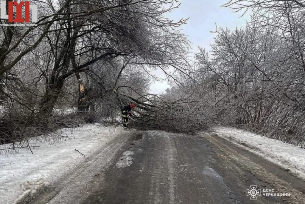 Упродовж доби 8 січня сильні пориви вітру на Черкащині спричинили падіння дерев, що створювало небезпеку для учасників дорожнього руху та